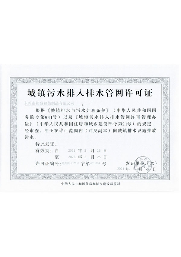偉盛公司地已獲得國家環保認證企業, 已通過 ISO 14001 環境體系認證 及 ISO 9001 質量管理體系認證